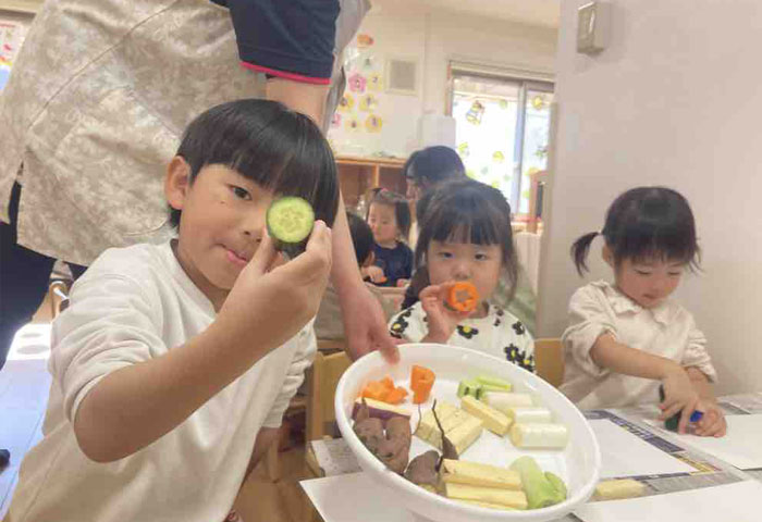 かがやき保育園うしく すずなりパプリカと野菜スタンプ