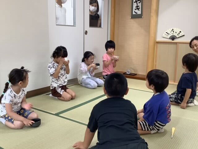 今回はお友だちのためにお茶を点てました。みんなお友だちがおいしく飲んでくれるかな?とドキドキした様子でした。