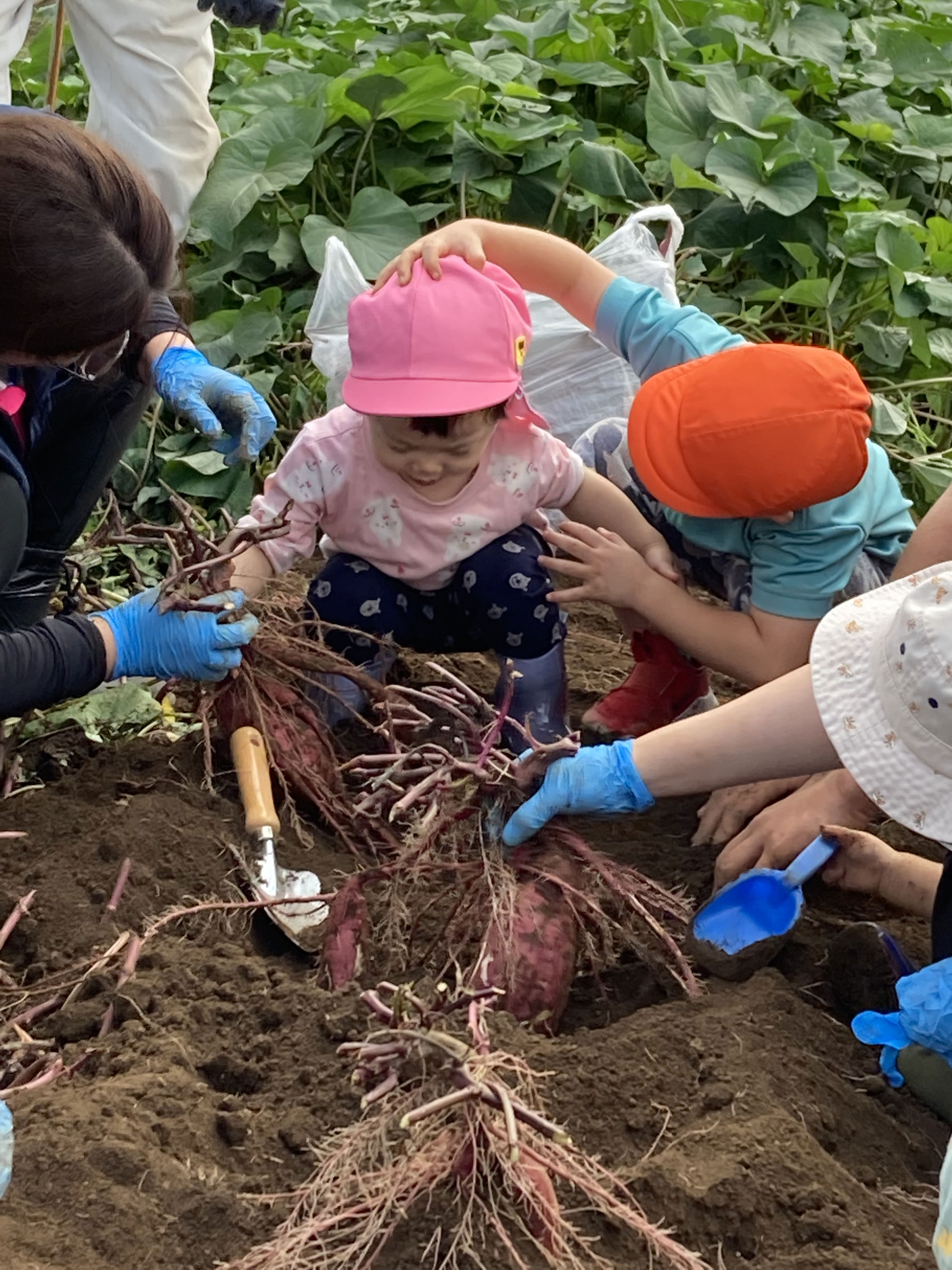 スコップを使ったり、お家の方やお友だちと協力してさつま芋掘りを楽しみました!