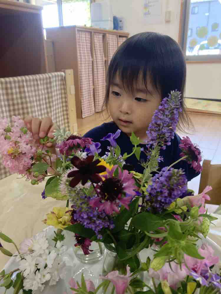 「かがやき保育園うしく」 『花育』鮮やかなお花を使って