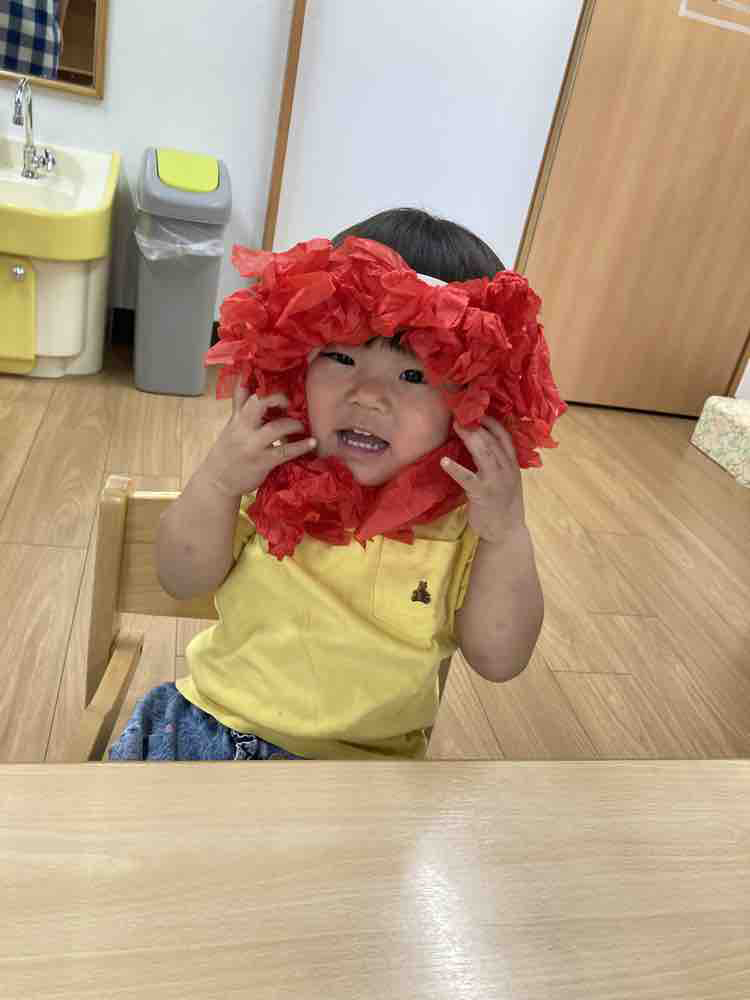 絵の具が付いた手を保育者に見せたり、画用紙に手形をつけて楽しむ様子も見られましたよ。