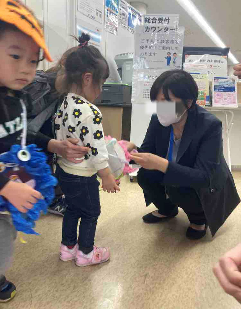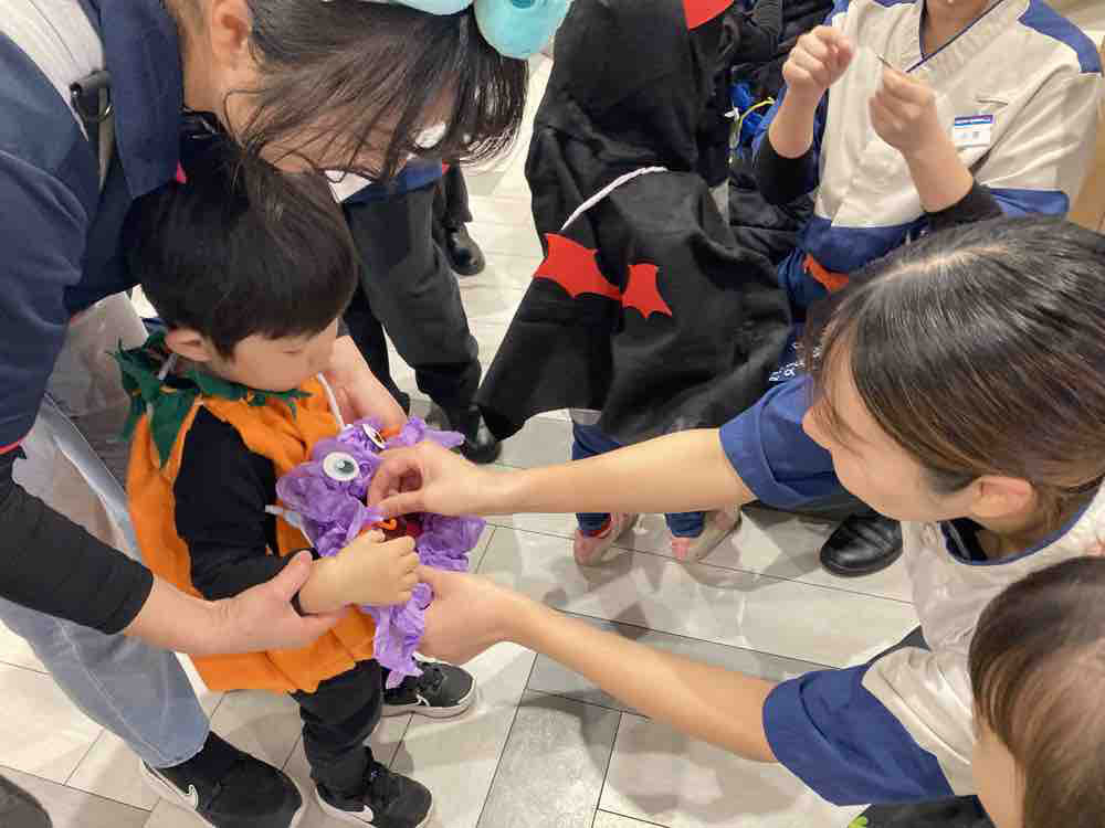 お菓子のシールを貼ってもらったり、お菓子をいただきました。