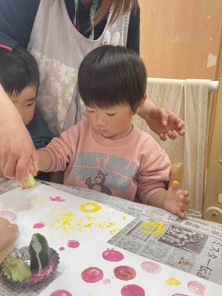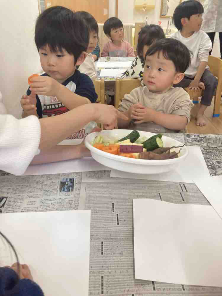 「かがやき保育園うしく」 野菜スタンプ