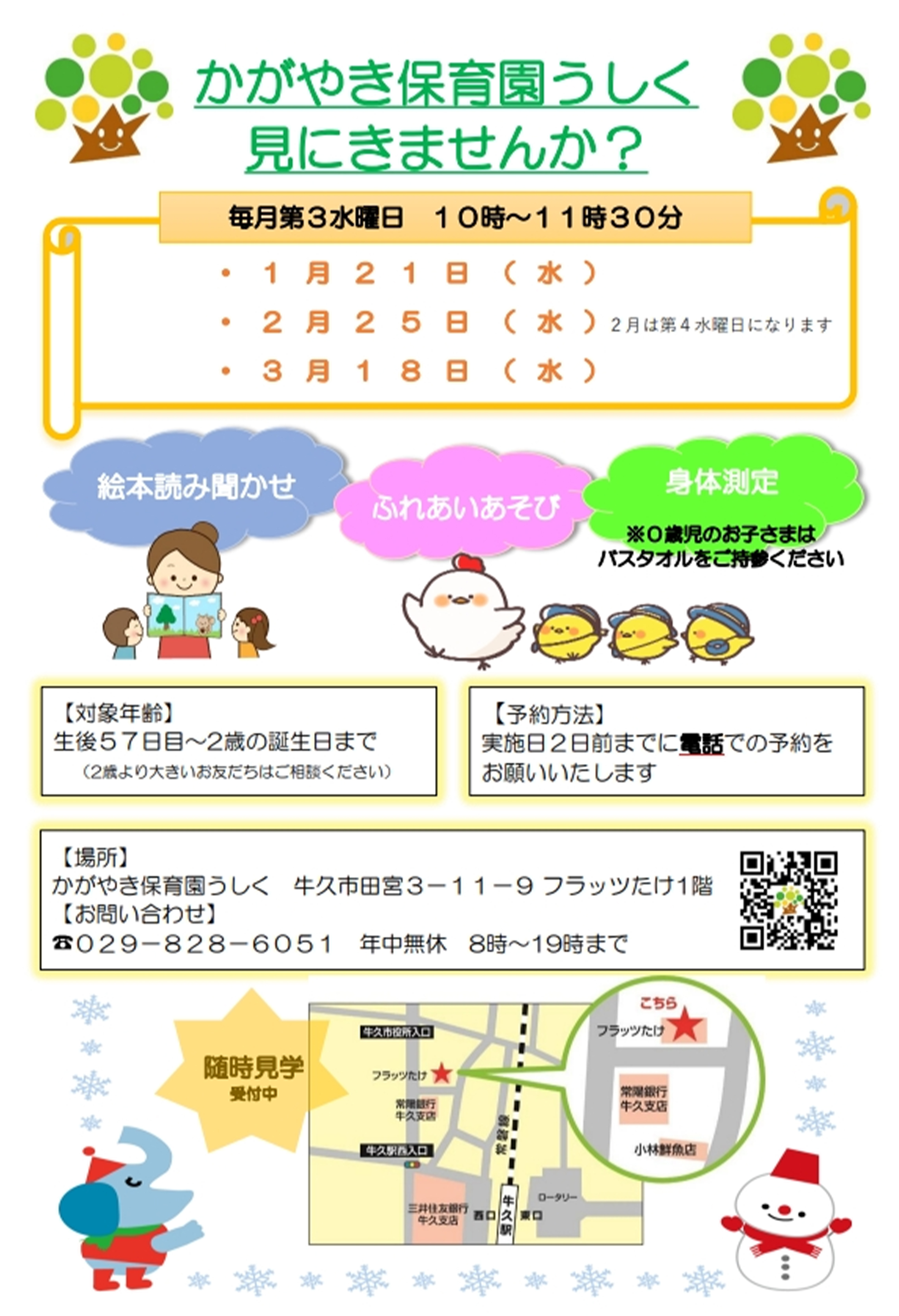 「かがやき保育園うしく」1月の見学会のお知らせ