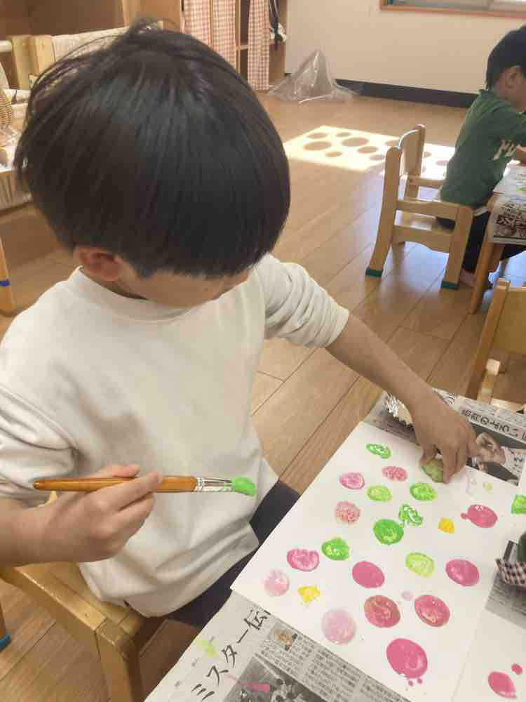 「かがやき保育園うしく」 野菜スタンプ