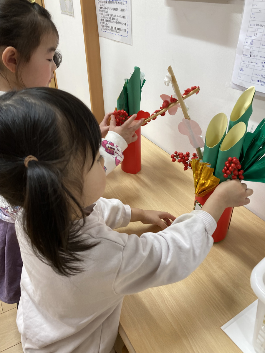 みんなで作ったお正月飾りを飾って、新しい年を迎えました。