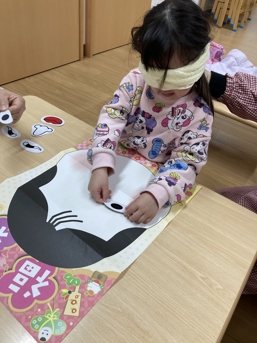 お正月あそびは、福笑いや凧揚げをしました。