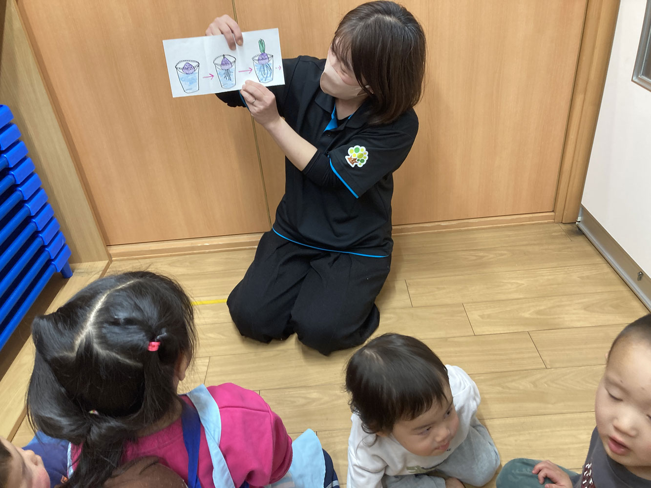 「かがやき保育園かしわ」ヒヤシンスを育てています。