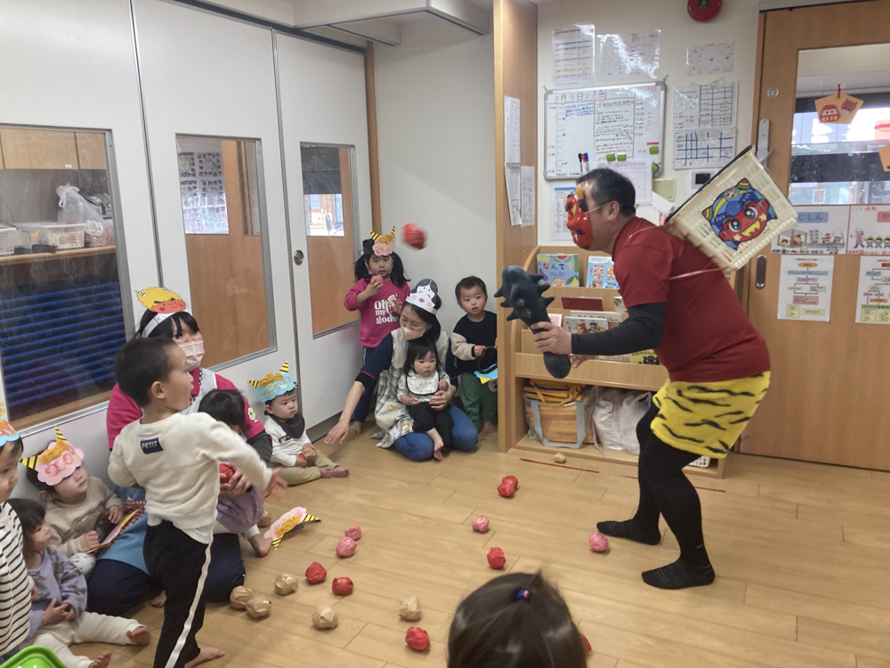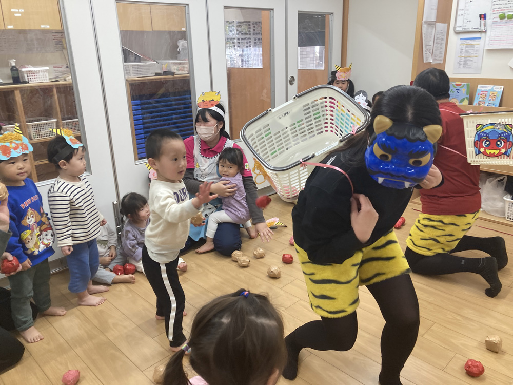 保育園の玄関には子どもたちの節分の作品を飾っていますので、ぜひ送迎の際にはお子さんの作品を探してみてください。