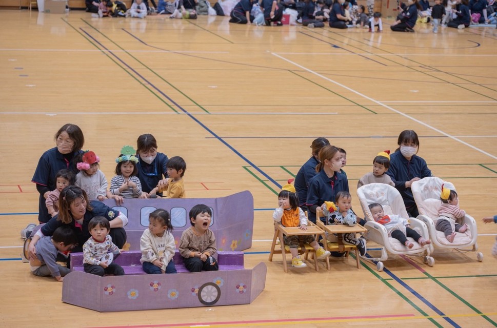 初めての広い体育館でしたが、ちょっぴり緊張しながらも堂々と入場してきた子どもたち。