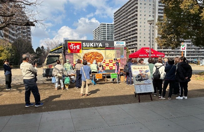 昼食は「すき家」のキッチンカーで作ってくれた温かい牛丼♪