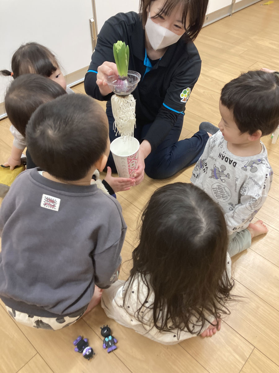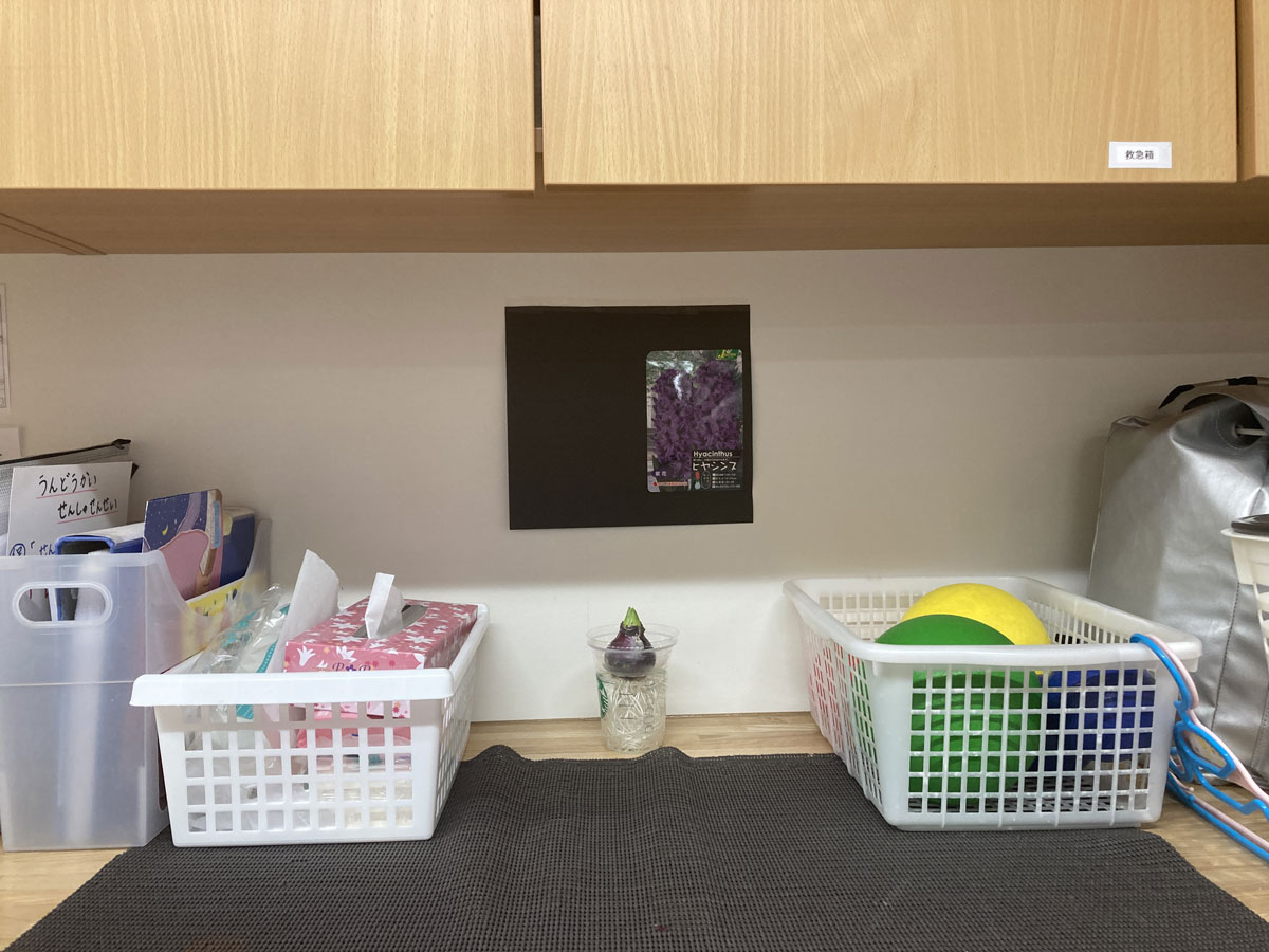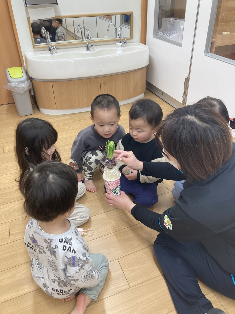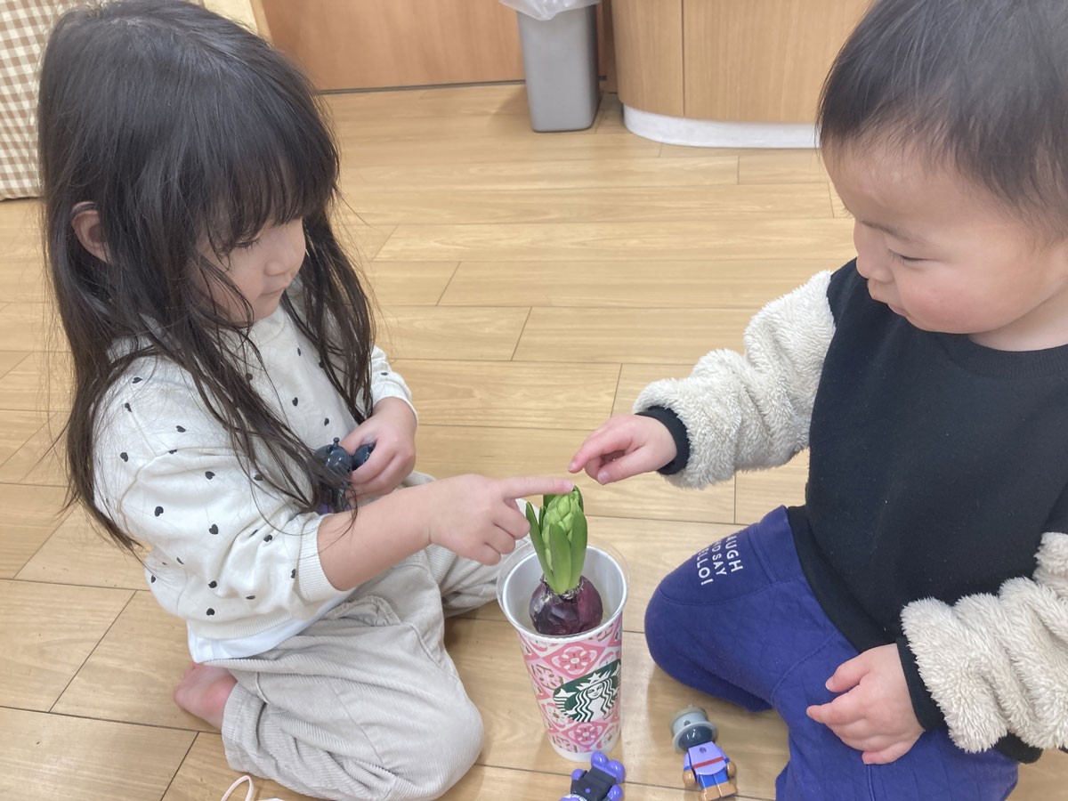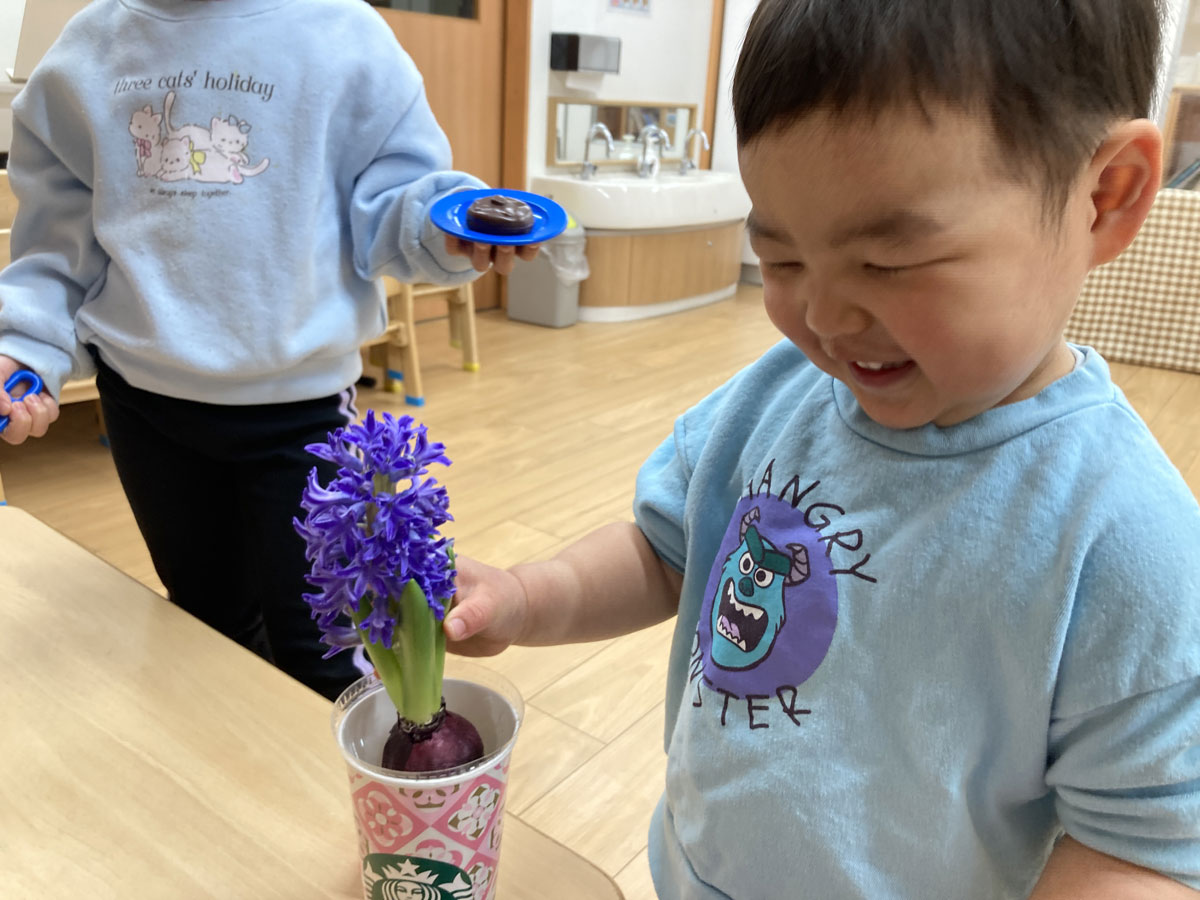 保育室で、運動会の練習や節分集会を静かに見守っていたヒヤシンスが