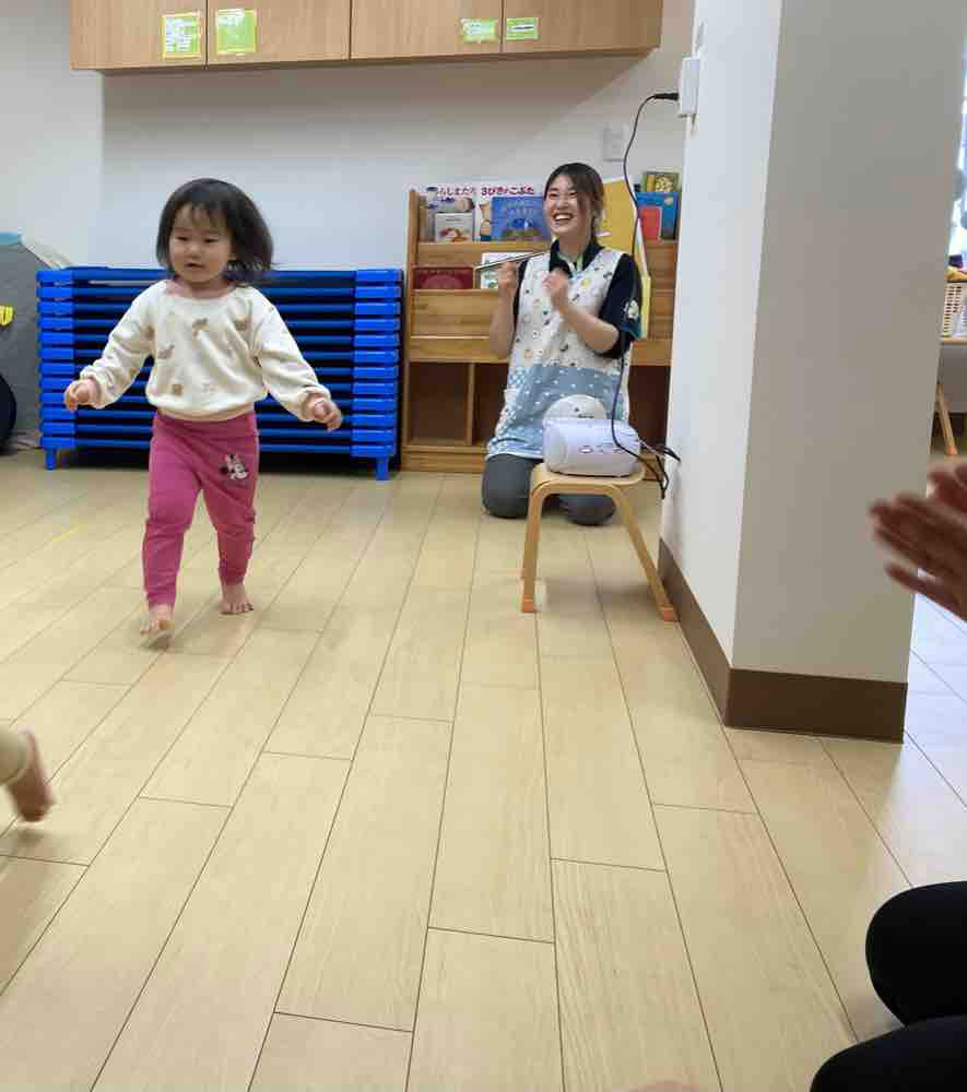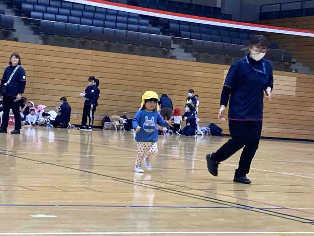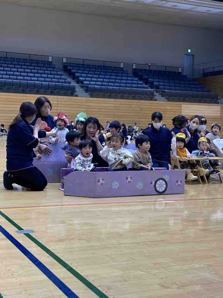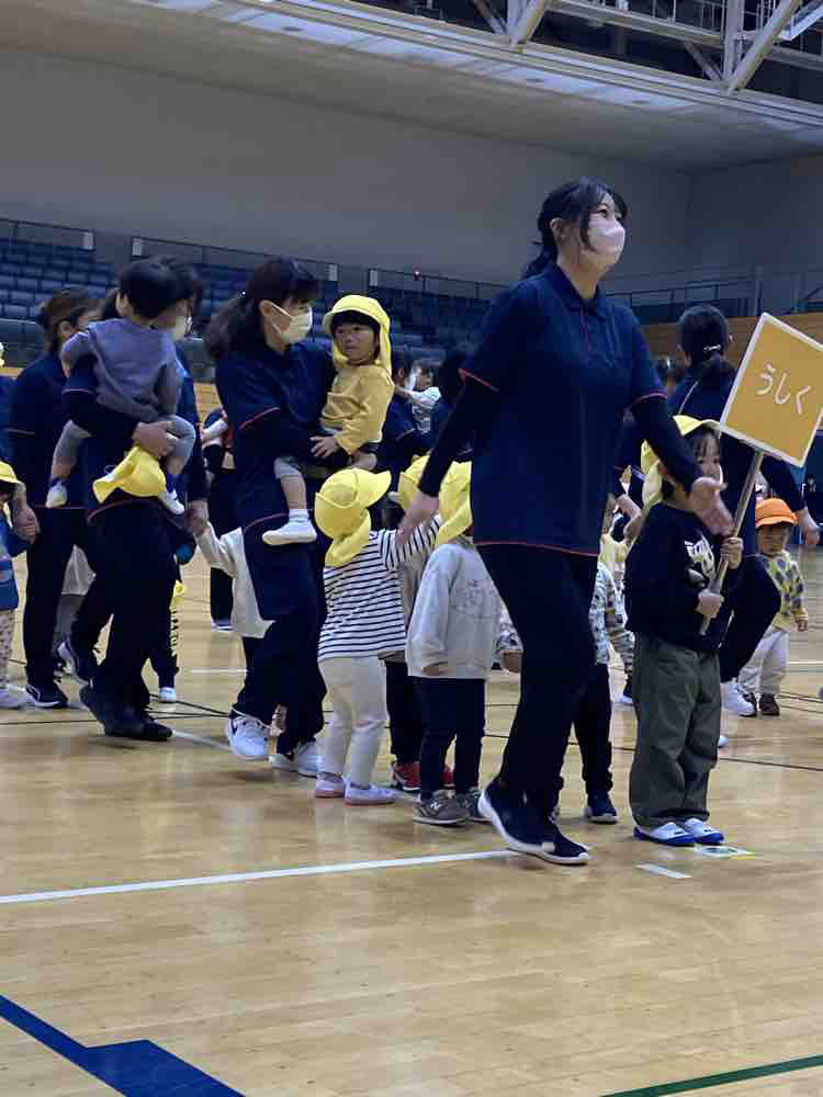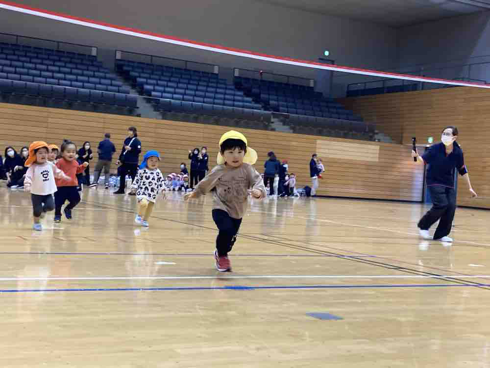 当日は、初めての【カピオホール】広い場所での開催で、ニコニコとした表情で楽しんでいる子、びっくりして泣いてしまう子、固まってしまった子と、様々な姿が見られました。園での練習は、普段の保育の中に取り入れたりしながら行いました。