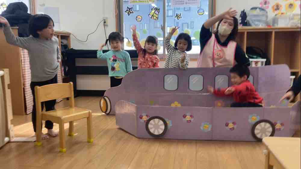 各園の発表、うしく園は「おべんとうバス」の音劇です。