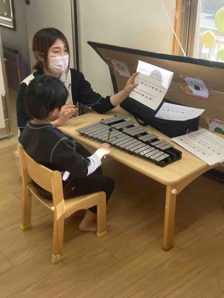 うしく園の5歳児さんは「鉄琴」を担当し、他園の子たちとは、オンラインで合わせたりしながら、日々頑張って練習してきました。