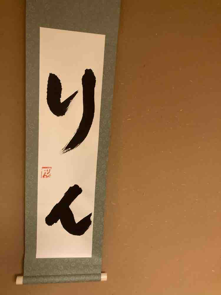 床の間には、書道の時間に書いた掛け軸が飾られていました。