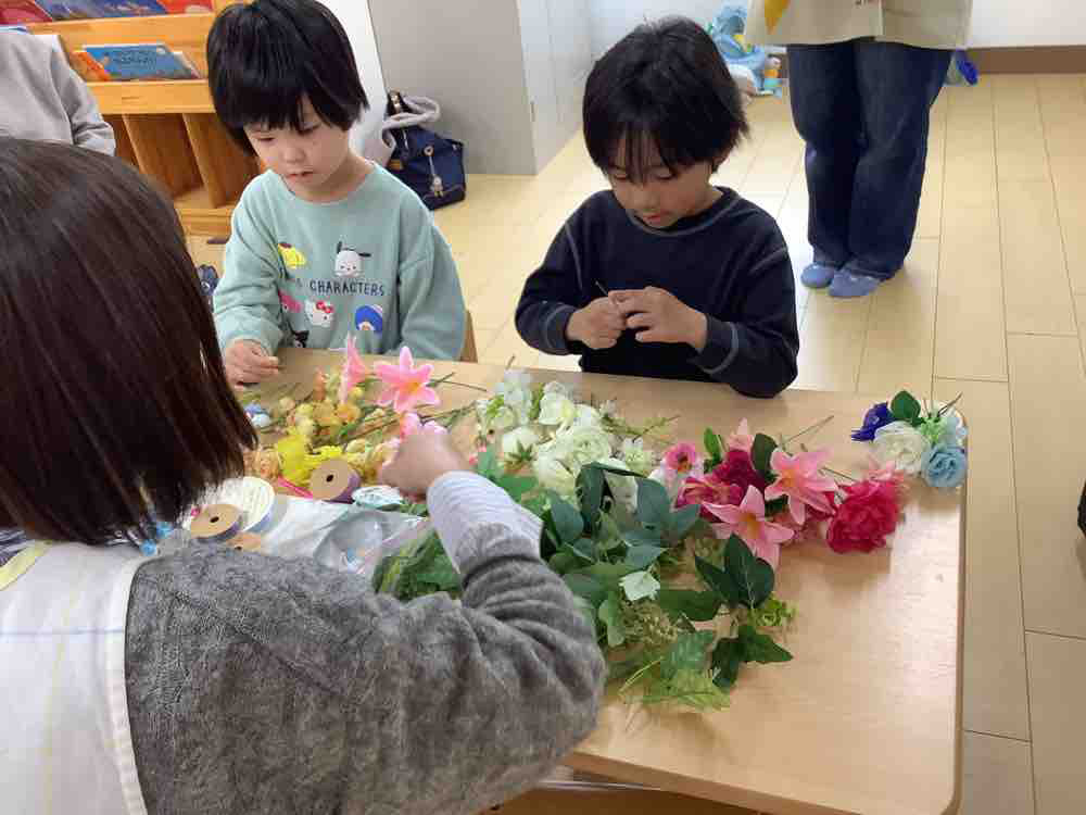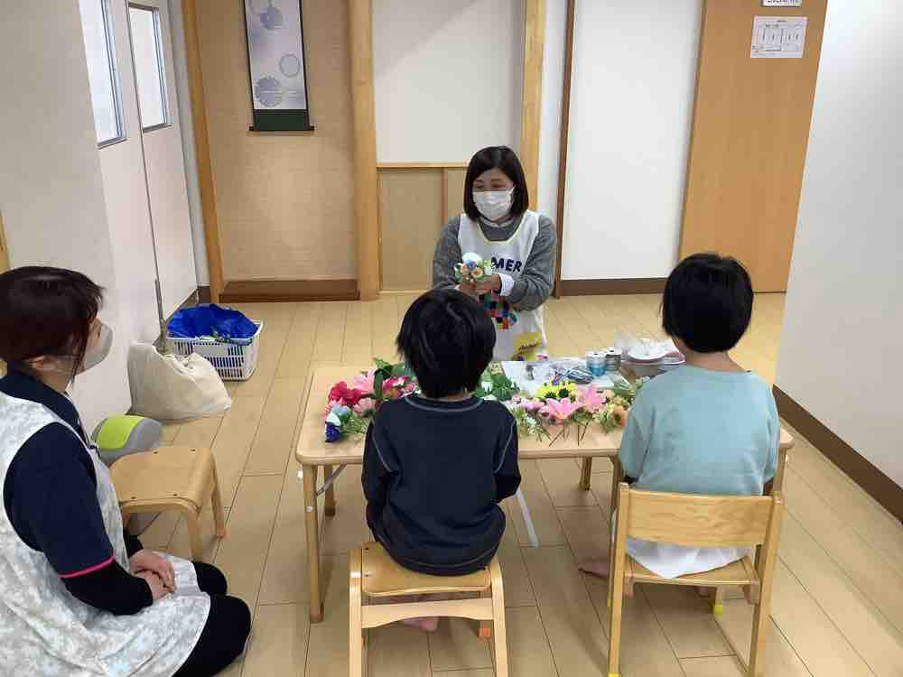 2月には、うしく園の床の間がある保育室で、「コサージュづくり」を行いました。