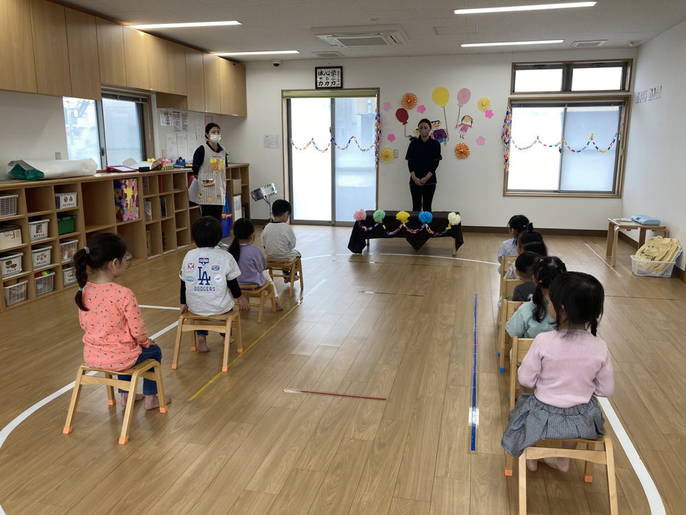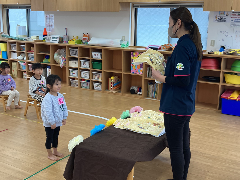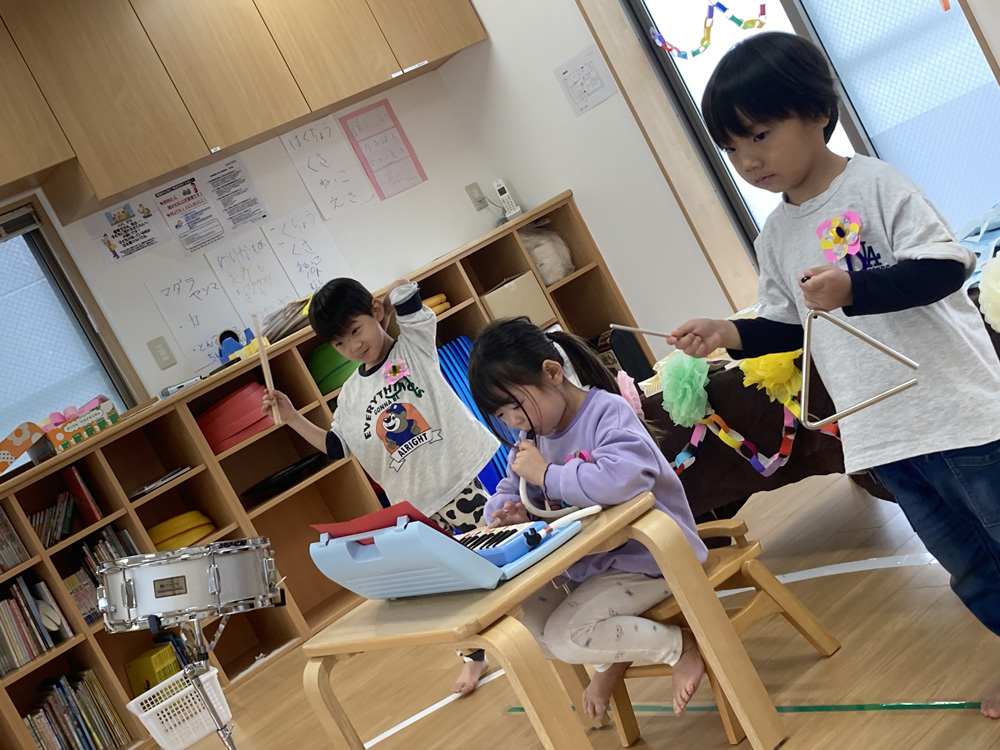 4歳児・5歳児による合奏では、3歳児になったお友だちに向けて「一緒にたくさんあそぼうね」という気持ちを込めて、素敵な演奏を披露してくれました。