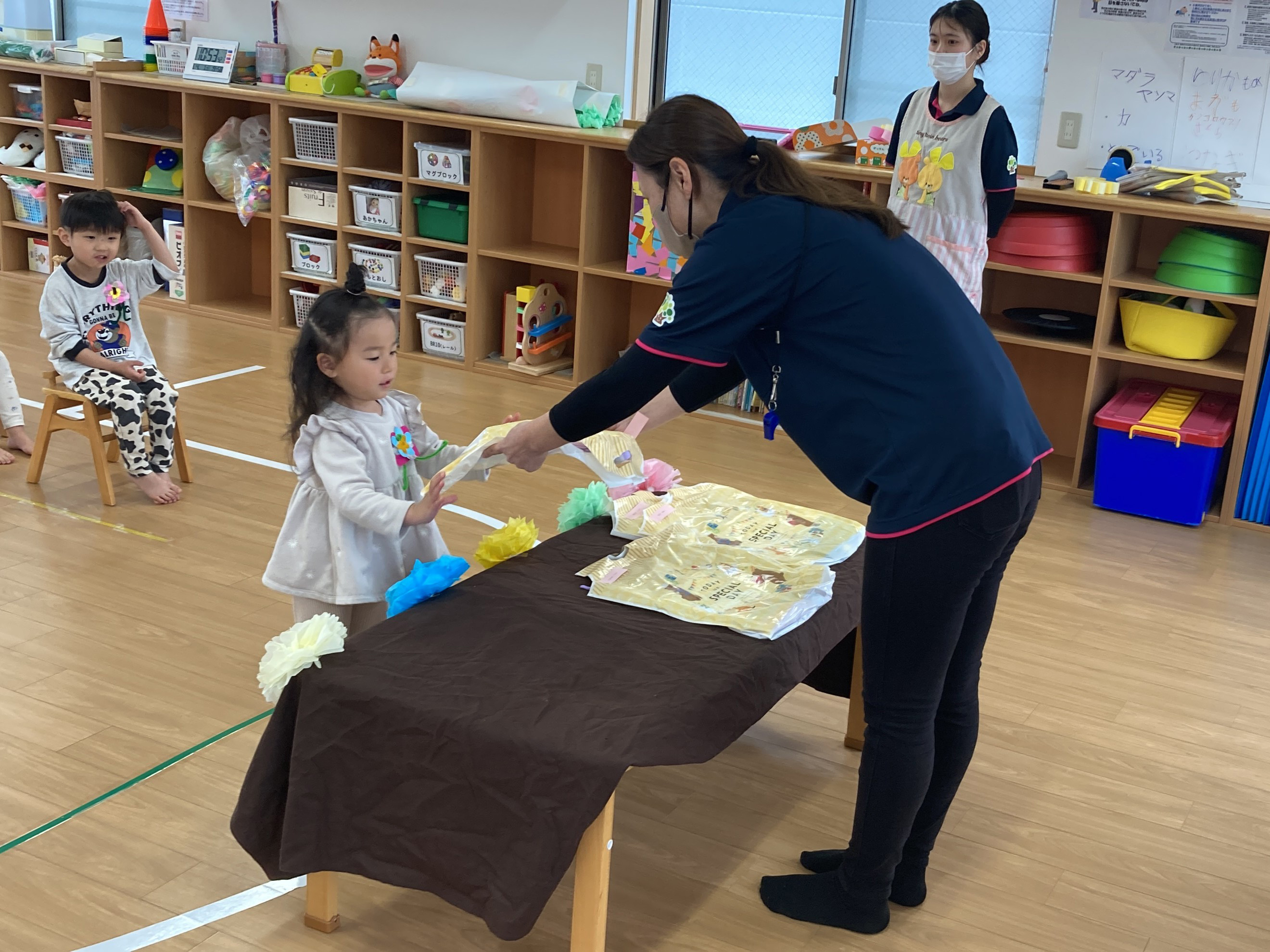 記念品を受け取る際には、右手・左手と丁寧に受け取り、お辞儀をする姿に成長を感じることができました。