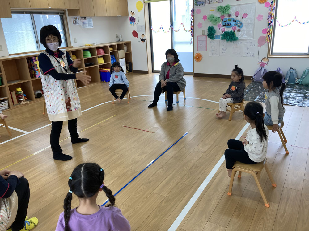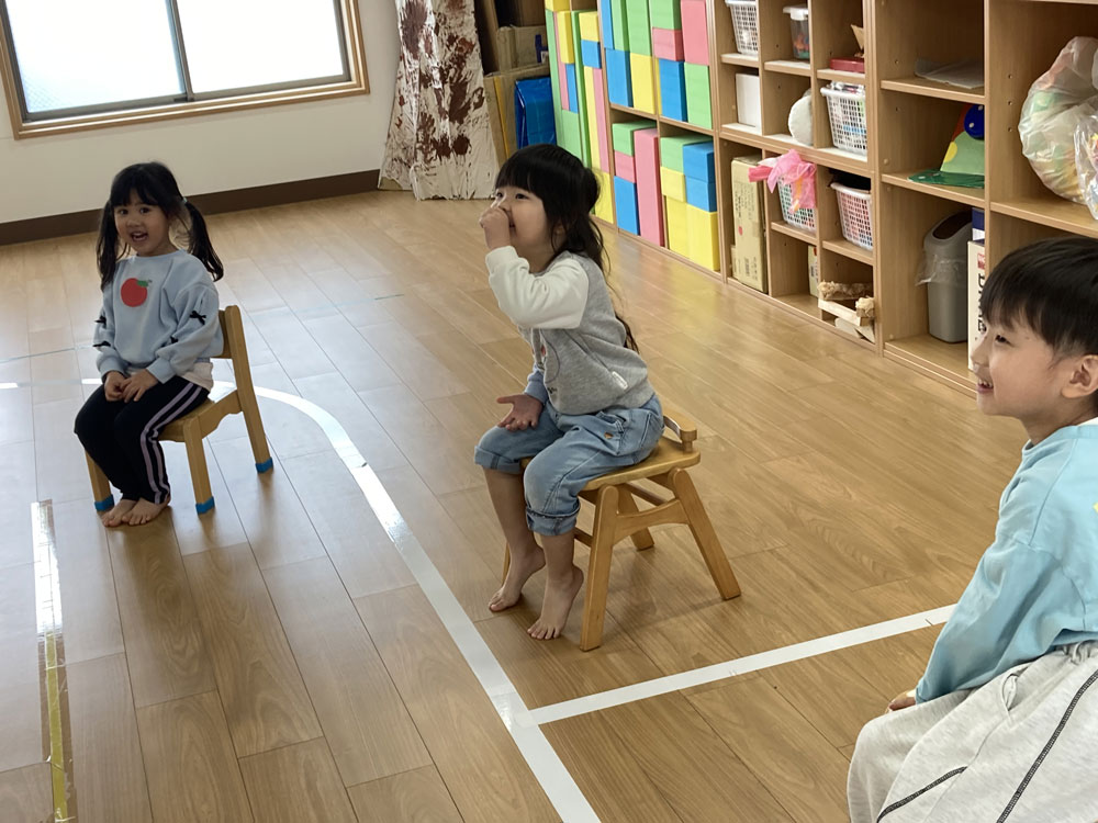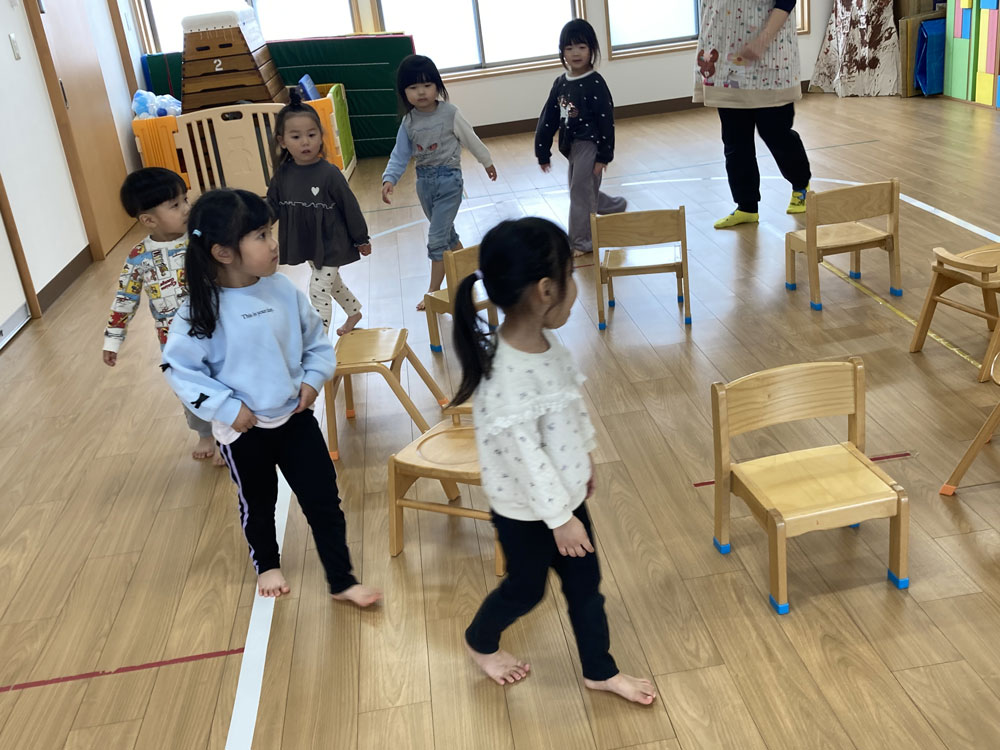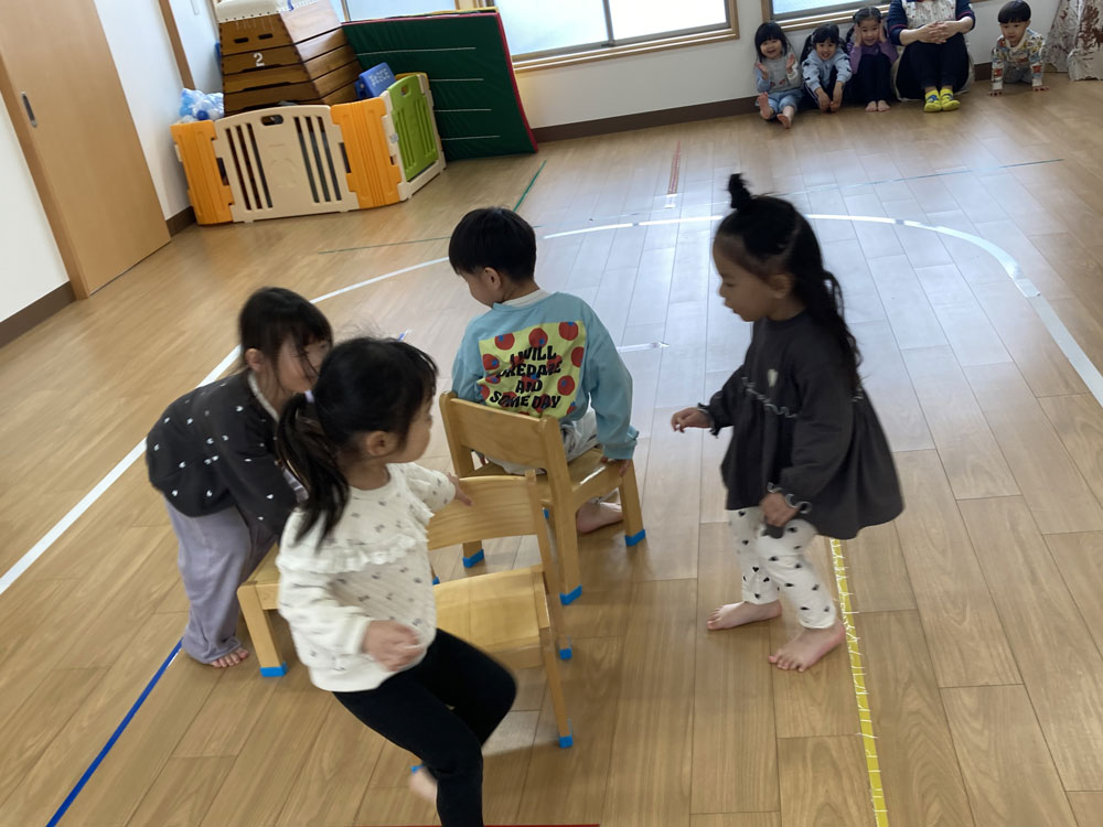 プレイルームでフルーツバスケットや椅子とりゲームをしてあそびました。