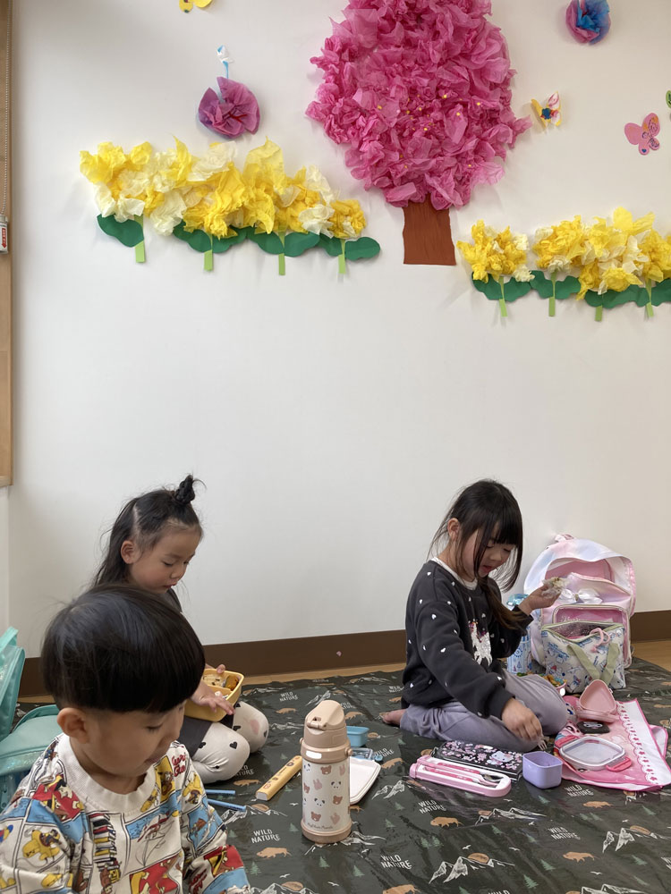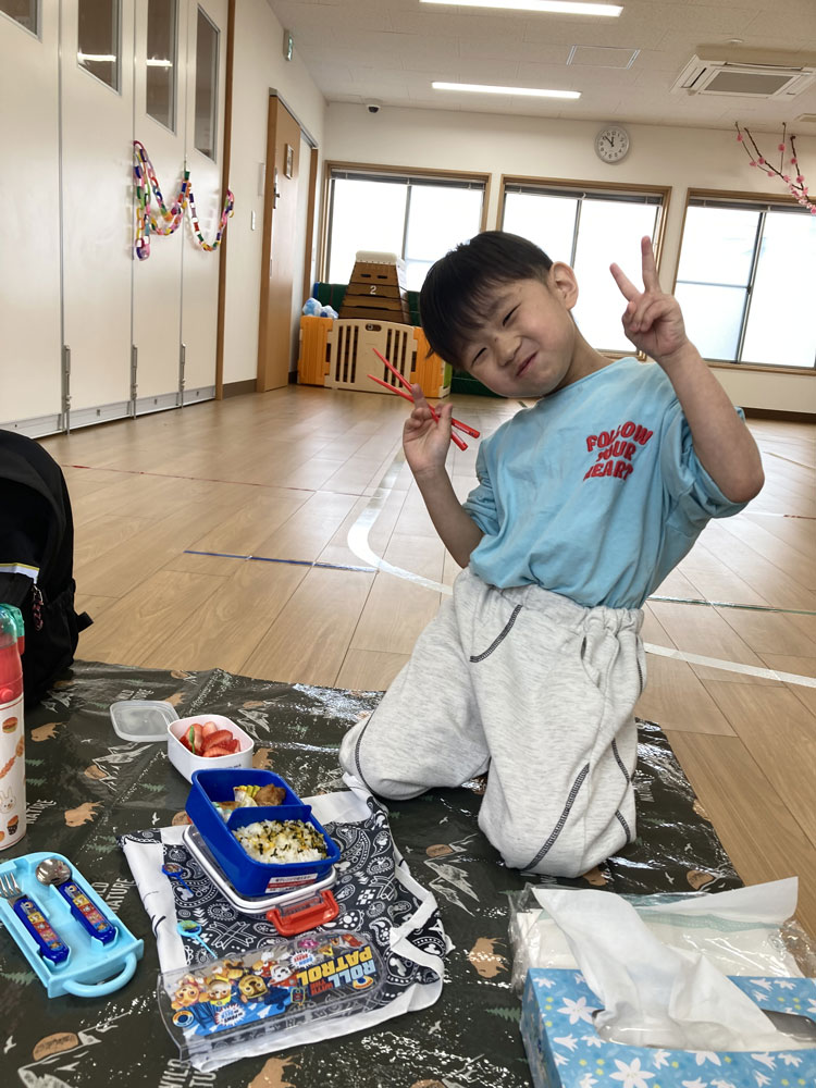おうちの人が作ってくれたお弁当が楽しみで、「ごはんまだ~?」と待ち遠しい様子。