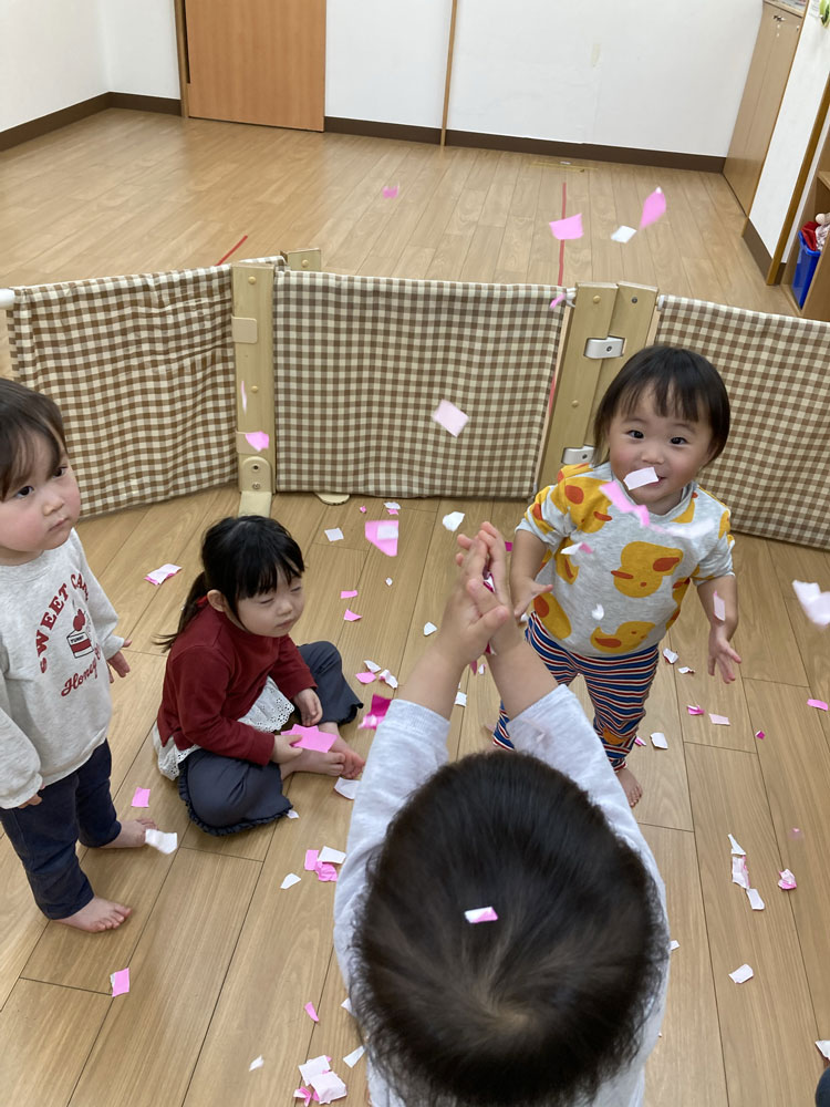 たくさん出来た花びらを使って花吹雪をすると、